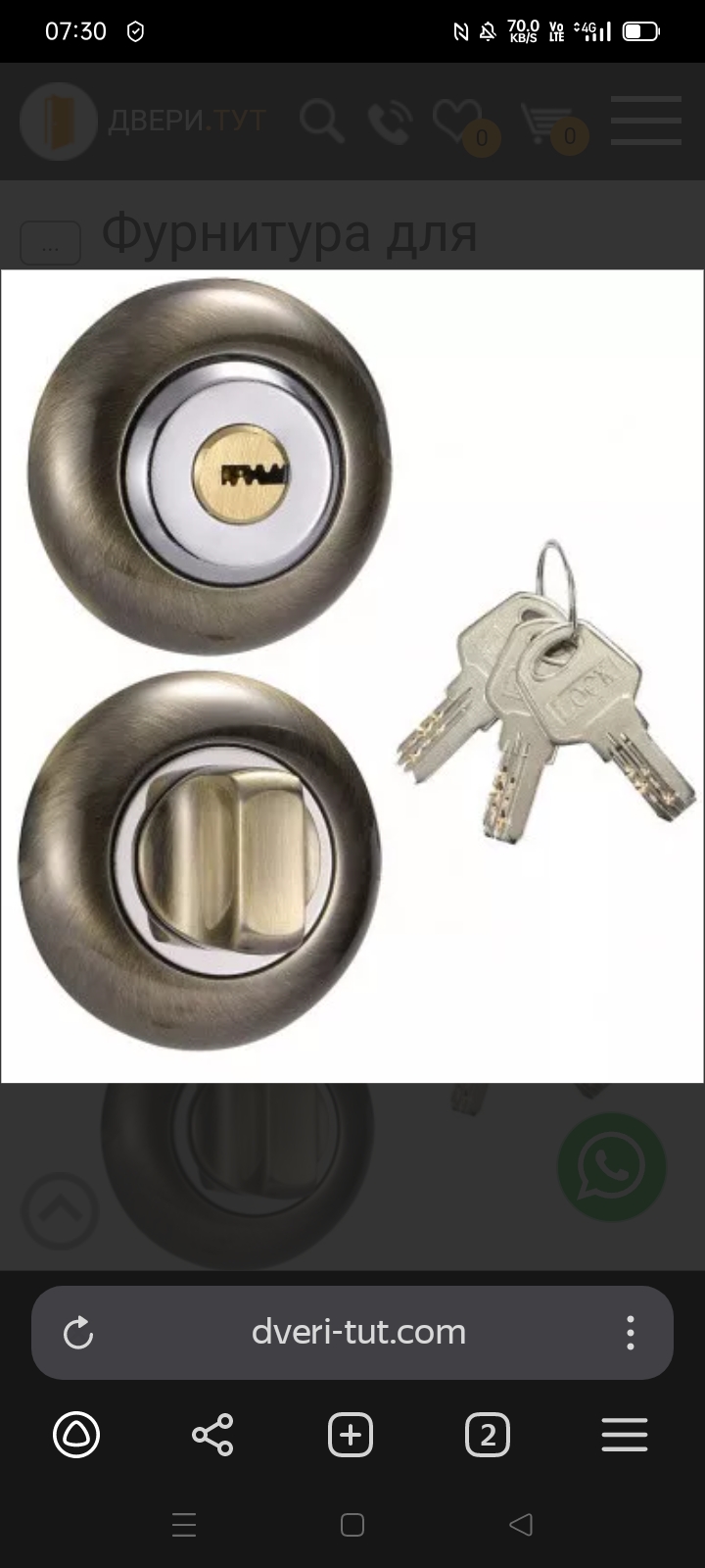 Фиксатор с ключом для межкомнатных дверей на круглом основании имеет разный цвет