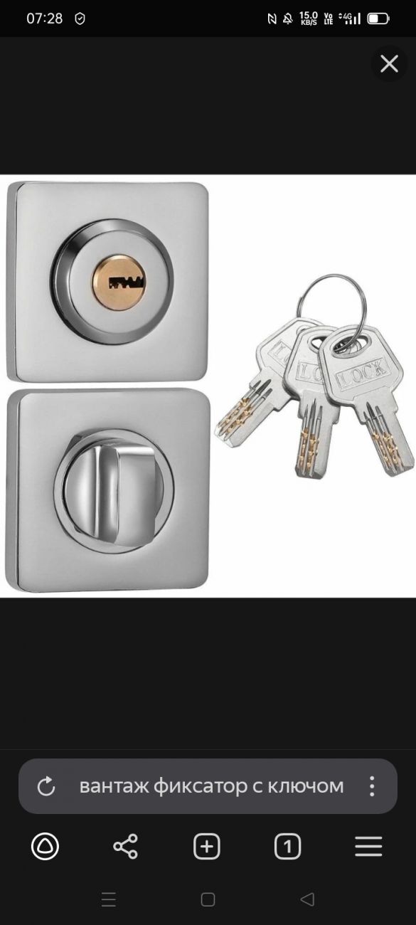 Фиксатор с ключом на квадратном основании для межкомнатных дверей имеет разный цвет