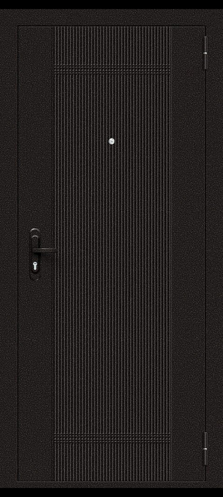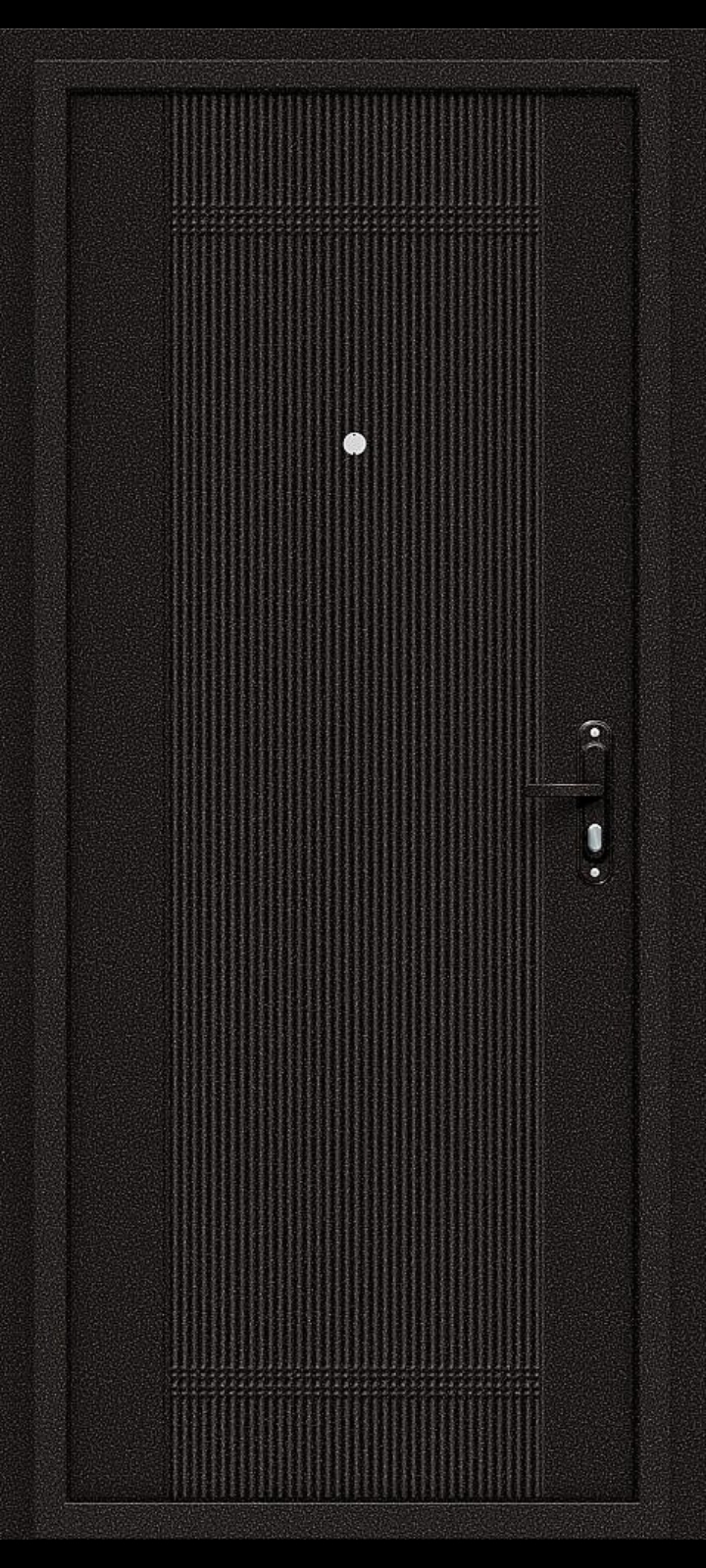Высококачественная конструкционная углеродистая сталь (08пс). Отделка снаружи: Металл с атмосферостойким порошково-полимерным покрытием «Антик». Отделка внутри: Металл с атмосферостойким порошково-полимерным покрытием «Антик». Окраска: Индустриальная полиэфирная порошковая краска. Толщина стали полотна/коробки, мм: 0,7/0,8 Ширина наличника, мм: 47 Уплотнение: Два контура уплотнения Утепление полотн