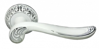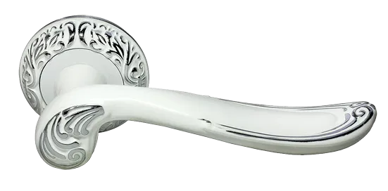 Ручка дверная GIUSEPPE MH-22-CLP W/PC раздельная на круглом основании, цвет белая эмаль/хром, ЦАМ