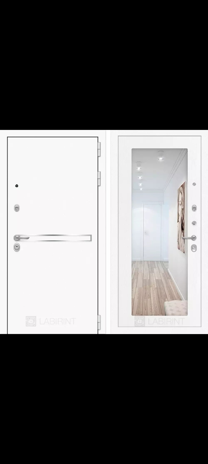 Входная дверь Лайн Вайт с Зеркалом 18 - Белое дерево