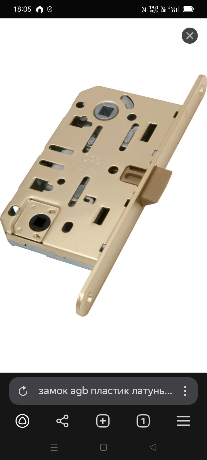 Замок AGB пластиковый язычок бесшумный под фиксатор,в цвете латунь,матовая латунь,без ответной планки.